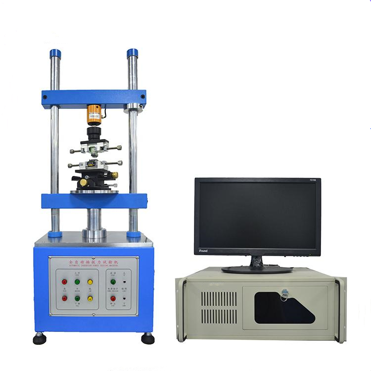 产品简介:全自动插拔力试验机,是用于各种连接器之插入力拔出力的测试,搭配专利设计之自动求心装置,将可得到完全准确之插拔力试验。可显示每次插入力及拔出力(PEAK值)。测试速度及测试次数均可设定。利用 WINDOWS, 视窗中文画面设定 , 操作简单方便 , 且所有资料皆可储存 ( 试验条件、位移曲线图、寿命曲线图、检查报表……等等 )