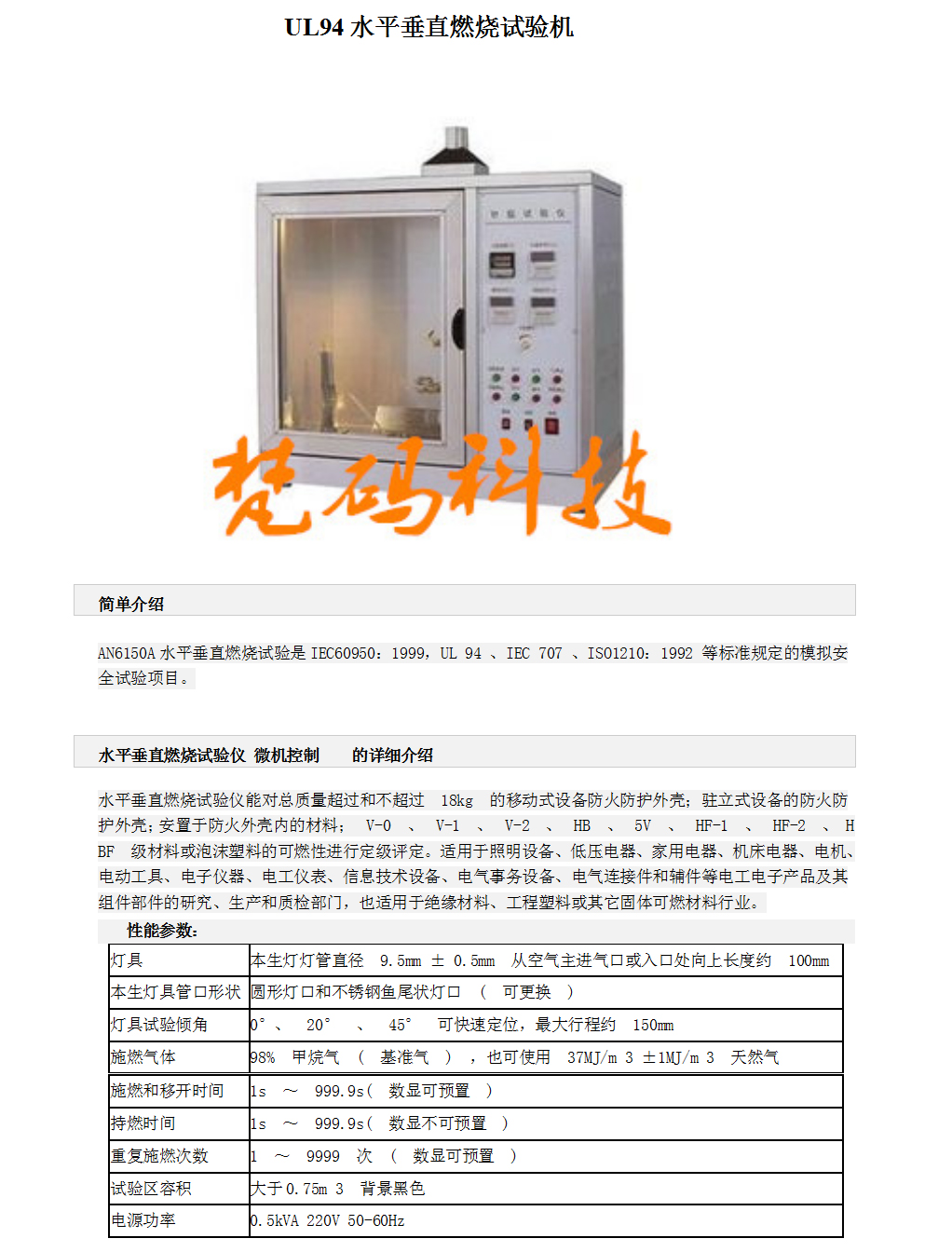 订购:UL94 水平 垂直燃烧试验机