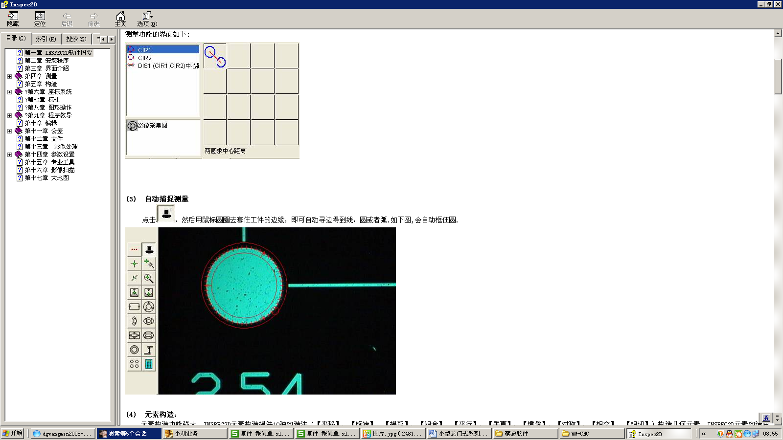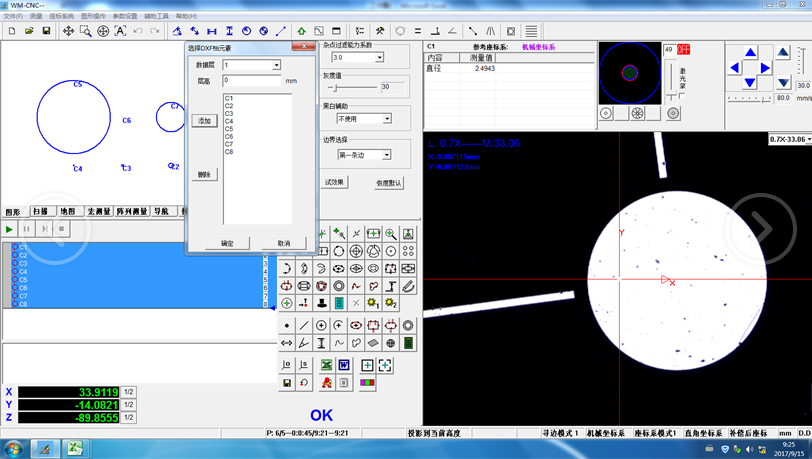 鼠标圆圈去套住工件的边缘,即可自动寻边得到线,圆或者弧.如下图,会自动框住圆.The mouse circle to trap the edge of the workpiece, you can automatically find the edge to get the line, circle or arc. As following picture,will automatically frame the circle.