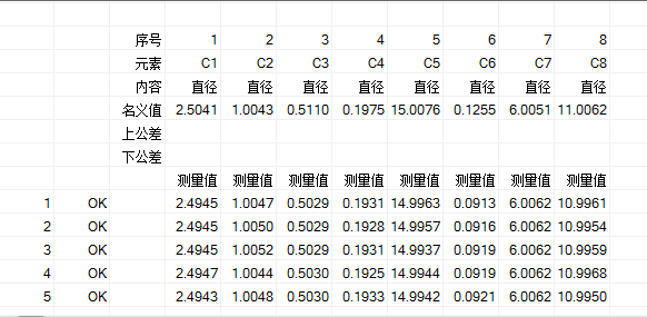 下图是同一个工件图片,测量五次后,自动导出到Excel中的报表:The following image is the same work piece,after five measurements, the report is automatically exported to Excel: